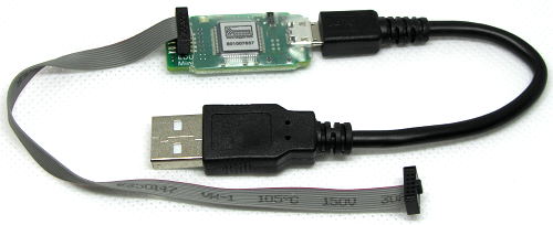 The J-Link EDU mini is a JTAG/SWD debugger from SEGGER for Cortex-M microcontrollers and can be seen in the image below. It is a small form factor version of the J-Link EDU debug probe. For more information, visit the J-Link EDU mini web page on the SEGGER website.