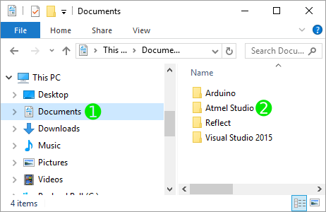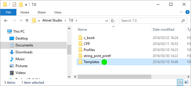 Open the Atmel Studio folder inside the Documents folder. This folder is created when Atmel Studio is installed. Now open the Atmel Studio version number folder which is 7.0 in the case of Atmel Studio 7.