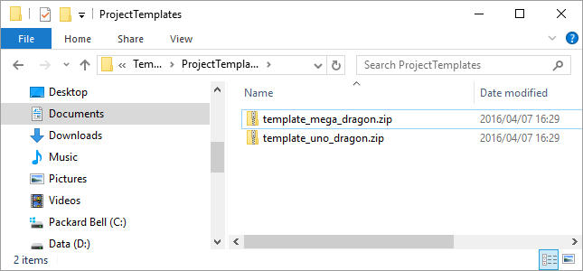 The two template files should now be found in the ProjectTemplates folder.
