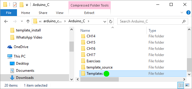 Locate the Templates folder at the bottom of the list of folders found inside Arduino_C and open it.