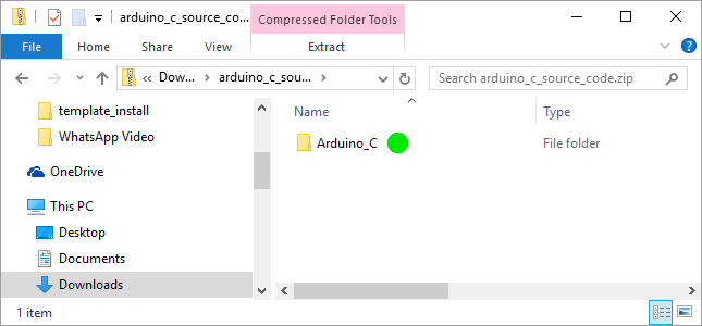 Double-click the arduino_c_source_code.zip file to open it and then open the Arduino_C folder inside the zipped file.