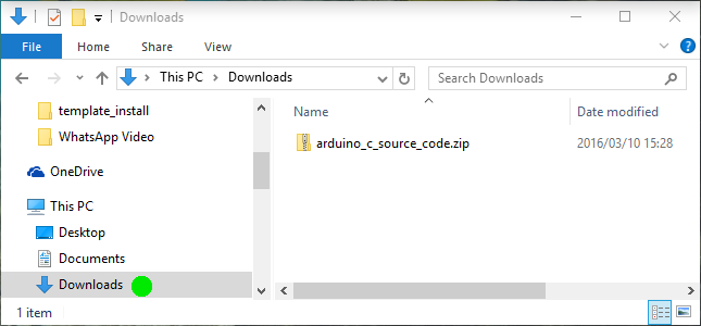 The file downloaded from Elektor should be found in the Downloads folder and is called arduino_c_source_code.zip as shown in the following image.