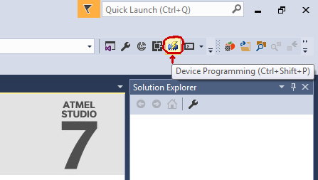 Start Atmel Studio and click the Device Programming icon on the top toolbar or select Tools → Device Programming from the top menu.